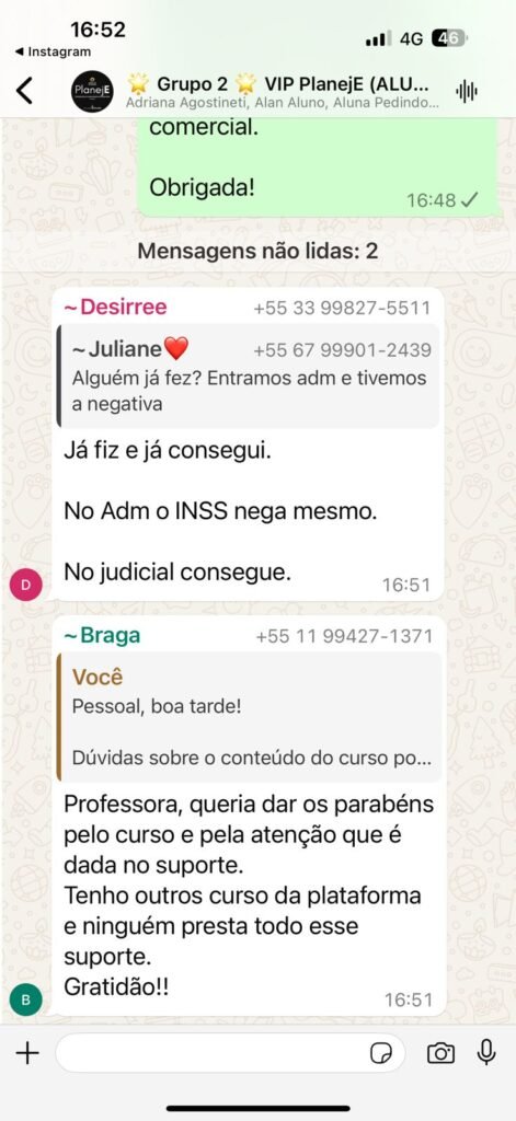 Você terá acesso a um Grupo de Whatsapp focado em netowork entre você e outros advogados.